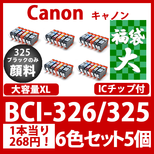 福袋大BCI-326 325(6色セットx5)325黒のみ顔料[Canon] 互換インクカートリリッジ