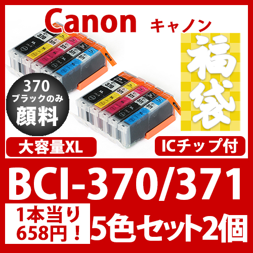 福袋BCI-371370(5色セット大容量x2)黒のみ顔料[Canon]互換インクカートリッジ