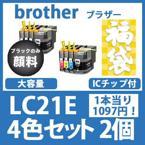 福袋LC21E(4色セットx2)ブラックのみ顔料 ブラザー[brother]互換インクカートリッジ